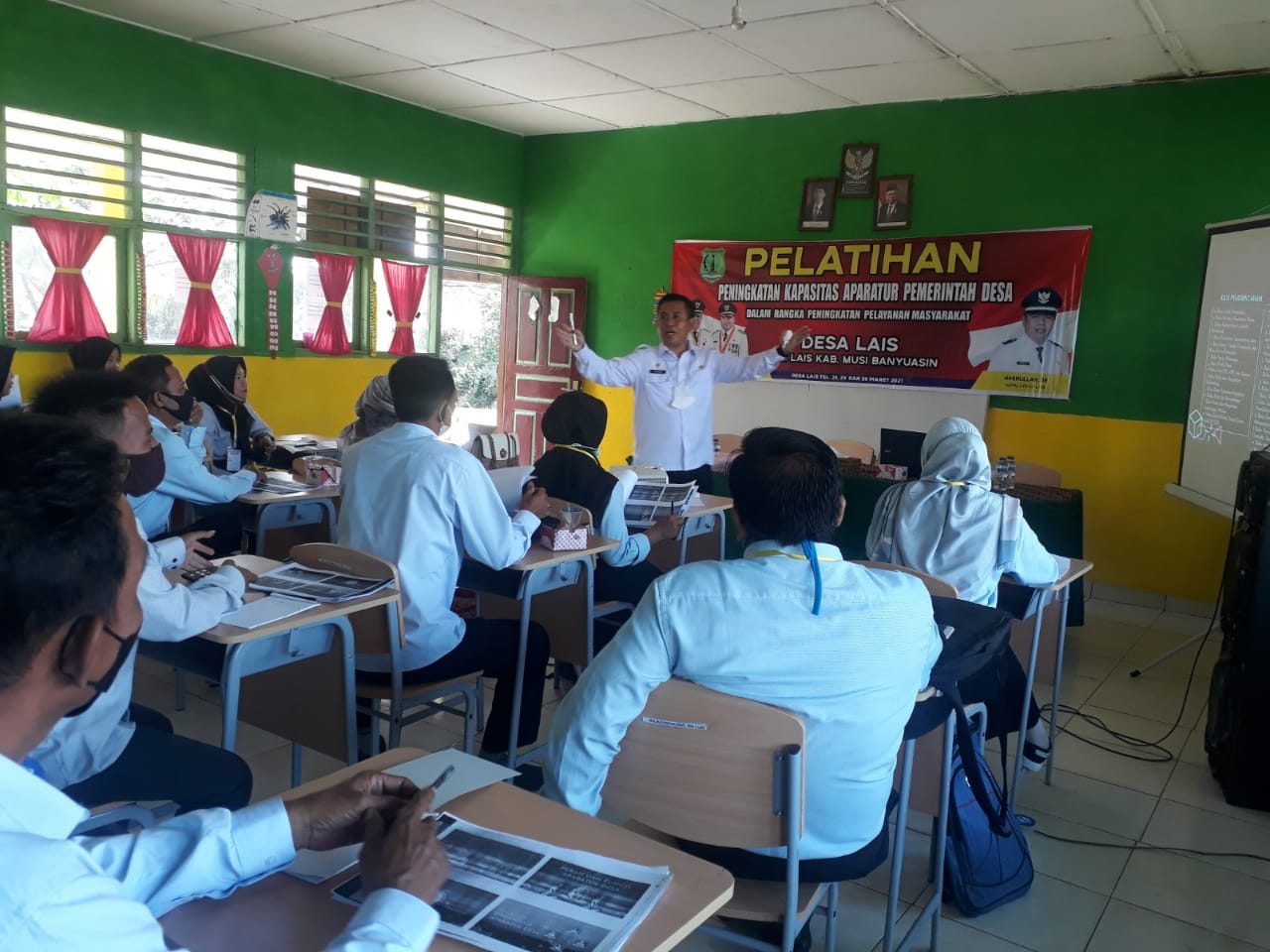 bidikcamera.com, MUBA – Kades Lais mengirimkan Pemdes dan BPD untuk mengikuti Kegiatan Pelatihan Penyelenggaraan Peningkatan Kapasitas Pemerintahan Desa Tahun Anggaran 2021 yang di adakan oleh Dinas Pemberdayaan Masyarakat dan Desa (DPMD) Kabupaten Musi Banyuasin, bertempat di SD Negeri 1 Lais, Kecamatan Lais Kabupaten Musi Banyuasin, Rabu (31/03/2021) dan Kamis (1/04/21) Serta Senin (5/04/21) selama 3 hari.