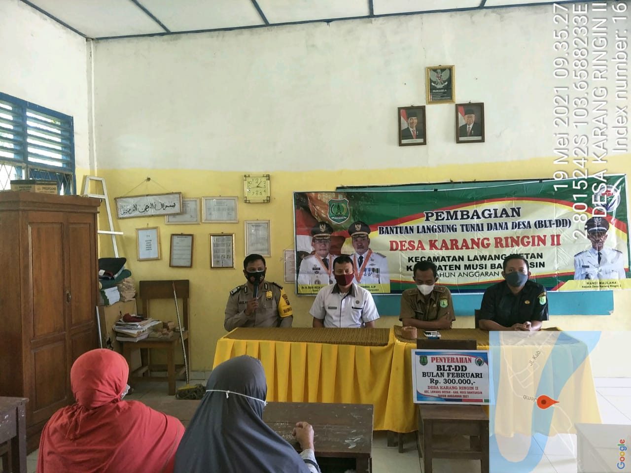 bidikcamera.com, MUBA – Pemdes Karang Ringin II Kecamatan Lawang Wetan Kabupaten Musi Banyuasin serahkan Bantuan Langsung Tunai Dana Desa (BLT-DD) Bulan Februari kepada warga yang membutuhkan pada Rabu (19/05/2021).