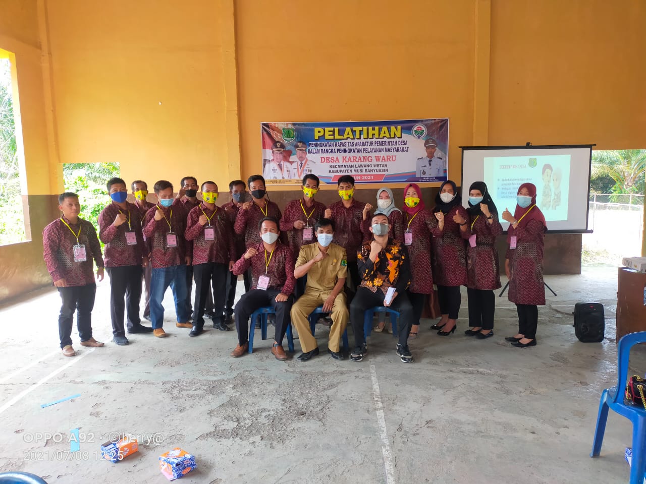 bidikcamera.com, MUBA – Pj Kades Karang Waru Kecamatan Lawang Wetan Kabupaten Musi Banyuasin ikut sertakan pemerintah Desa dan BPD untuk mengikuti kegiatan Penyelenggaraan Pelatihan Peningkatan Kapasitas Aparatur Desa tahun Anggaran 2021, bertempat di Balai Desa Bumi Ayu, Kamis-Sabtu (08-10/07/21).