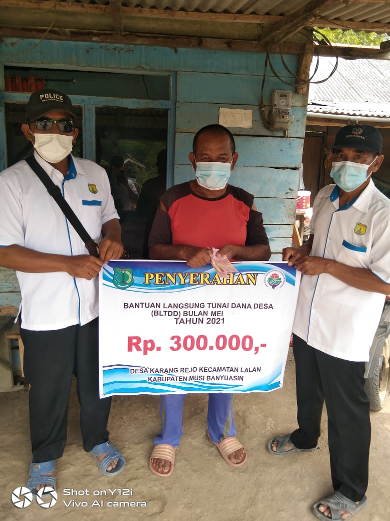 bidikcamera.com, MUBA – Pemerintahan Desa Karang Rejo Kecamatan Lalan Kabupaten Musi Banyuasin serahkan Bantuan Langsung Tunai Dana Desa (BLT-DD) periode Bulan Mei 2021 kepada warga yang kurang mampu yang terdampak Covid-19, Rabu (28/07/21) sebanyak 36 KPM.