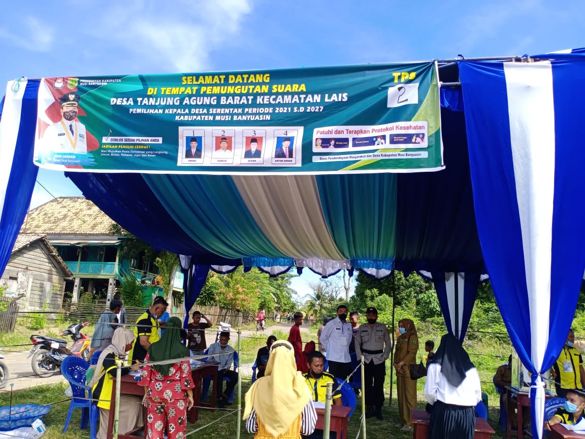 bidikcamera.com, MUBA – Desa Tanjung Agung Barat Kecamatan Lais , salah satu dari peserta 74 desa yang mengikuti pilkades, sebanyak 280 TPS melaksanakan pemungutan dan perhitungan suara serentak menentukan 74 orang yang akan diangkat sebagai kepala desa periode masa jabatan 2021 s/d 2027, Senin (22/11/21).