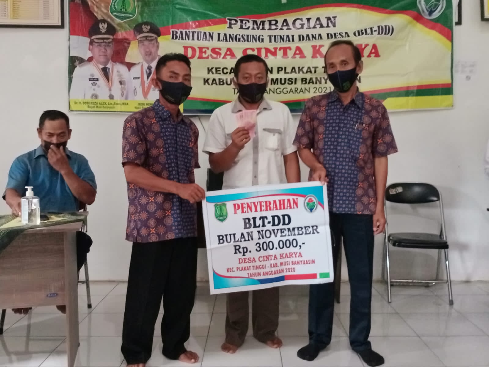 Kades Cinta Karya, Andi Irawan mengatakan bahwa penyerahan BLT-DD periode November 2021 ini guna membantu meringankan beban ekonomi bagi warga kurang mampu yang terdampak virus Covid-19 ini sudah sesuai dengan peraturan Menteri Desa, pembagian tersebut dilakukan secara bertahap dengan senilai Rp. 300.000./ bulannya,