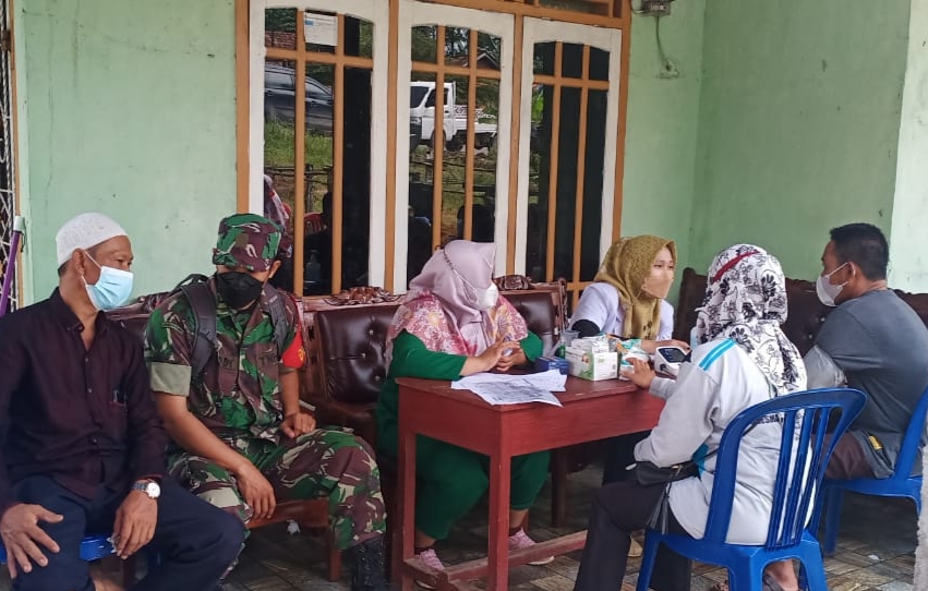 Koramil 0401-04 Bayung Lincir di kegiatan Vaksinasi Covid -19 yang di ikuti masyarakat ini mendapatkan pengaman dari anggota Babinsa koramil 401-04