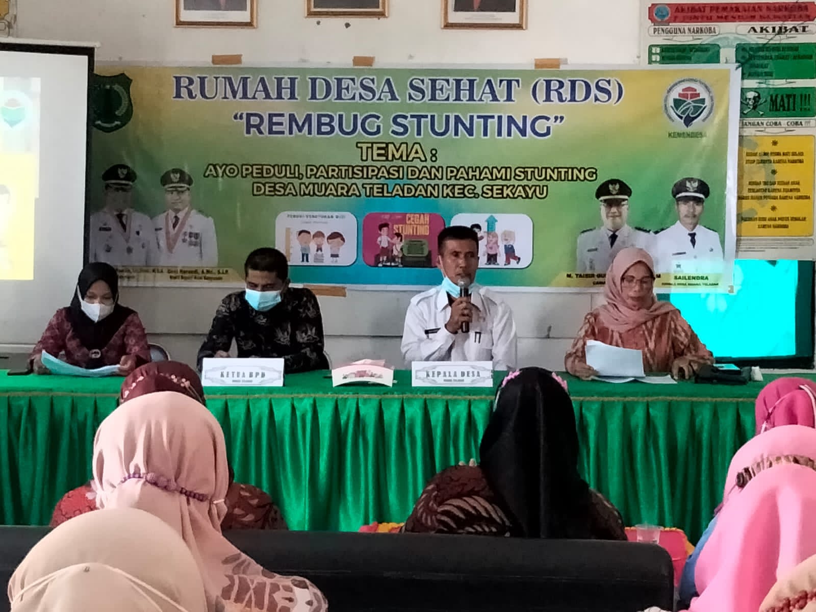 bidikcamera.com, MUBA – Pemdes Muara Teladan Kecamatan Sekayu Kabupaten Musi Banyuasin laksanakan kegiatan Rumah Desa Sehat (RDS) Rembuk Pencegahan Stunting, Selasa (07/10/21).