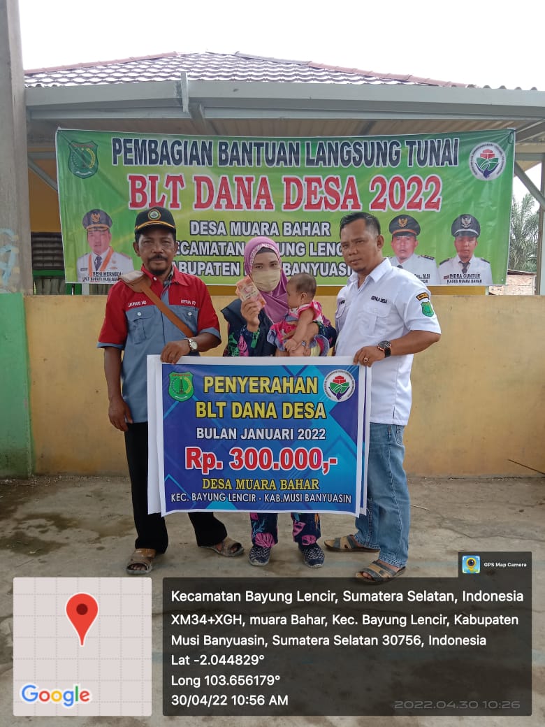 bidikcamera.com, MUBA – Dua hari sebelum berakhirnya Ramadhan Pemerintah Desa Muara Bahar Kecamatan Bayung Lencir Kabupaten Musi Banyuasin salurkan Bantuan Langsung Tunai (BLT) DD periode bulan Januari-Maret tahun 2022 kepada warga kurang mampu terdampak Covid-19 sebanyak 130 Keluarga Penerima Manfaat (KPM) pada tanggal (30/04/22).