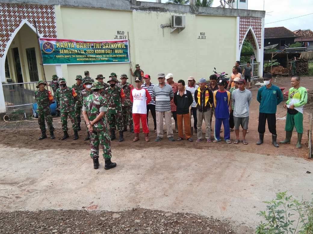 Danramil Sekayu Kapten M. Yamin mengatakan, “insyaallah dengan adanya kami dalam kegiatan ini Karya Bakti TNI Satkowil Muba 0401 Semoga kegiatan pengecoran/perbaikan halaman masjid bisa membantu atas kenyamanan warga Desa bisa beribadah di masjid ini dengan halaman yang memadai dan wilayah parkir yang cukup layak.”