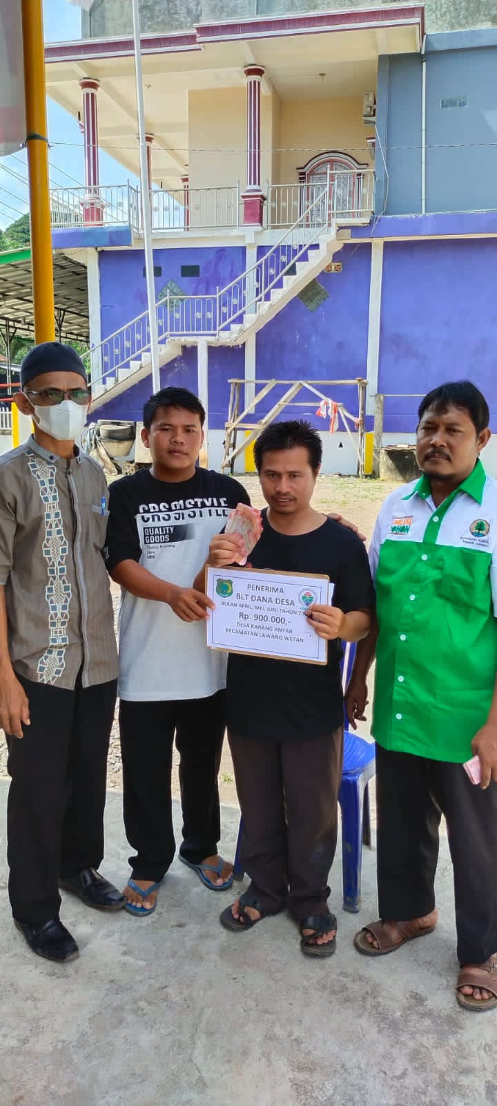 Kepala Desa Karang Anyar Zulkarnain mengatakan, “penyerahan BLT-DD ini sesuai dengan intruksi Pemerintah pusat dan dinas PMD dengan tujuan adalah untuk meringankan beban ekonomi warga yang kurang mampu, dan diberikan secara bertahap dengan nominal sebesar Rp 300 ribu/ bulannya diserahkan selama tiga bulan April, Mei dan Juni sebesar Rp 300 ribu/ bulannya, total yang di terima untuk tiga bulan Rp 900 ribu, dalam pelaksanaan penyerahan BLT kami bekerja sama dengan pihak Puskesmas, Babinsa, Babainkamtibmas untuk memberikan vaksin tahap 1 dan tahap 2 sampai vaksinasi Booster, jadi setiap penerima BLT-DD itu mendapatkan vaksin kami juga mempersilahkan bagi masyarakat yang mau vaksin,” jelas Kades. (bc)
