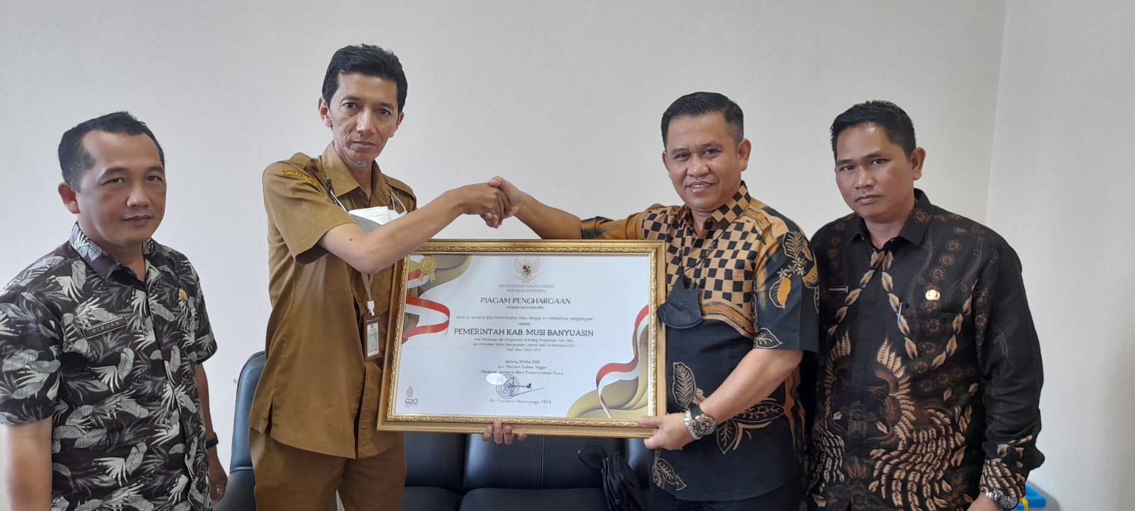 Pemerintah Kab. MUBA Melalui Dinas PMD Terima Piagam Penghargaan Dari Kemendagri Atas Penyampaian Laporan Hasil Inventarisasi Aset Desa