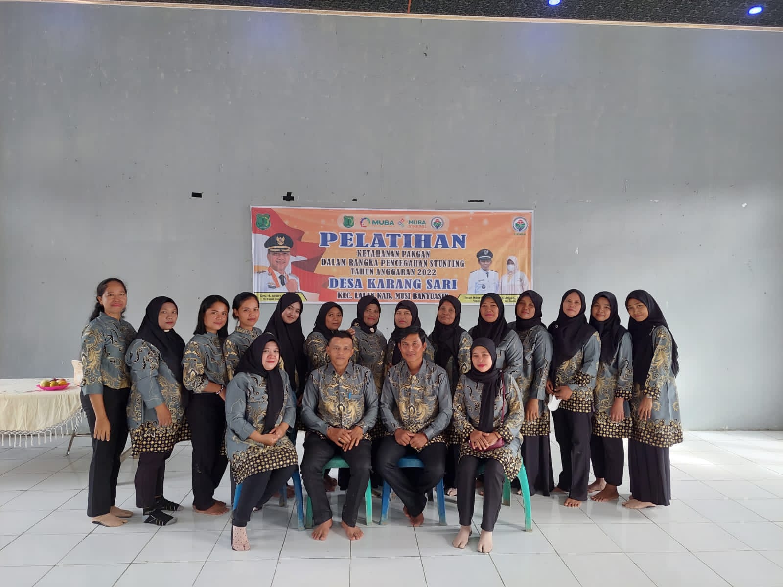 bidikcamera.com, MUBA – Kades Karang Sari Kecamatan Lalan Kabupaten Musi Banyuasin ikut sertakan kader-kader desa desanya untuk mengikuti kegiatan pelatihan ketahanan pangan dalam rangka pencegahan stunting (09-12/11/22).