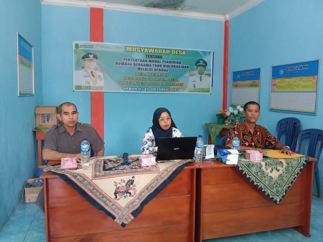 Dengan agenda yang dibahas yakni terkait pemaparan maksud dan tujuan dilaksanakannya musdes, pembahasan persetujuan dari peserta musdes terkait transformasi UPK menjadi BUM Desa Bersama di Desa Keban II serta pembahasan dan penyepakatan penyertaan modal Desa sebesar Rp. 5.000.000,00 yang dialokasikan dari Dana Desa pada Perubahan APB Desa Tahun 2022.