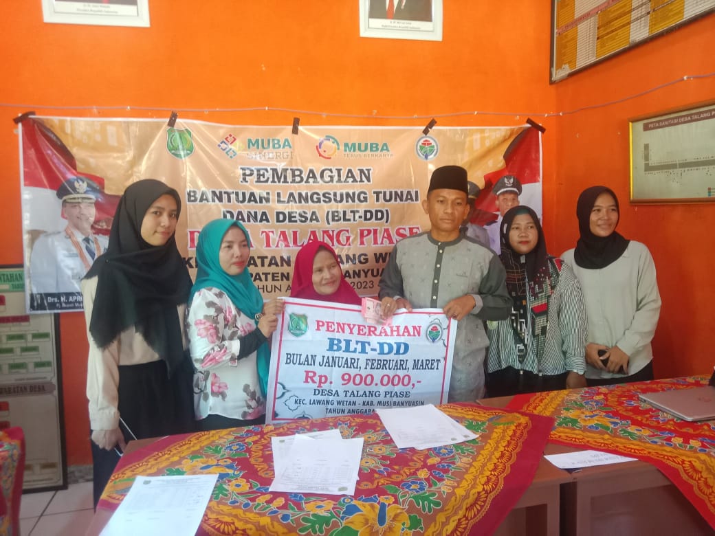 Kepala Desa Talang Piase Aang mengatakan, “penyerahan BLT-DD tahap ke I ini untuk Januari, Febuari dan Maret 2023, sebesar Rp 900.000 untuk tiga bukan penyerahan BLT ini sesuai dengan intruksi Pemerintah pusat dan dinas PMD dengan tujuan adalah untuk meringankan beban ekonomi warga yang kurang mampu, dan diberikan secara bertahap dengan nominal sebesar Rp 300 ribu/bulannya diserahkan selama tiga bulan.”