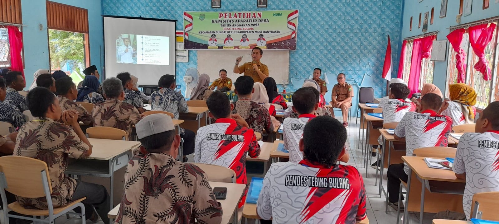 bidikcamera.com, MUBA – Kades Tebing Bulang Kecamatan Sungai Keruh Kabupaten Musi Banyuasin mengikutsertakan perangkat desa dalam kegiatan pelatihan peningkatan kapasitas aparatur desa bertempat di SMP Negeri 5 Sungai Keruh (03/04/23).