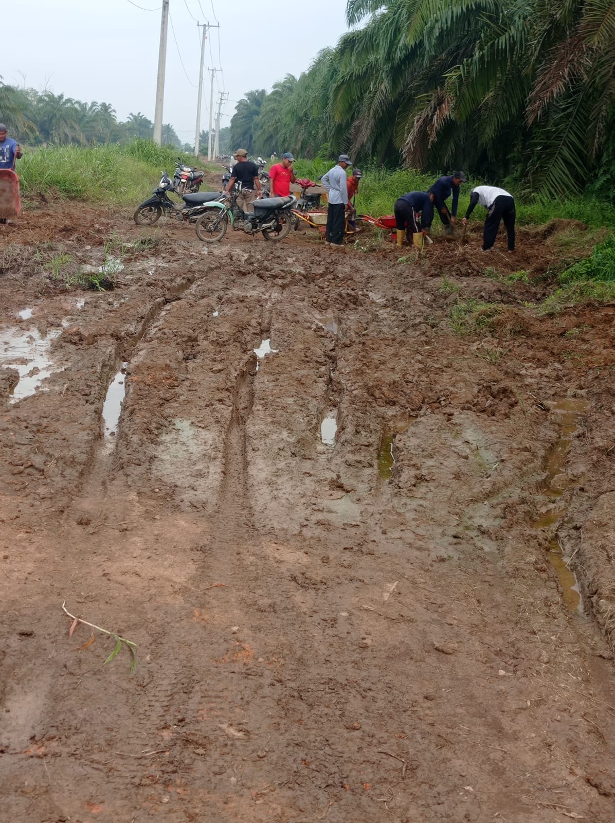 Kegiatan gotong royong dalam memperbaiki jalan desa yang rusak parah sepanjang 3 KM, dikarenakan curah hujan yang sangat tinggi sehingga mengakibatkan salah satu akses jalan yang rusak parah sehingga sulit untuk dilalui.