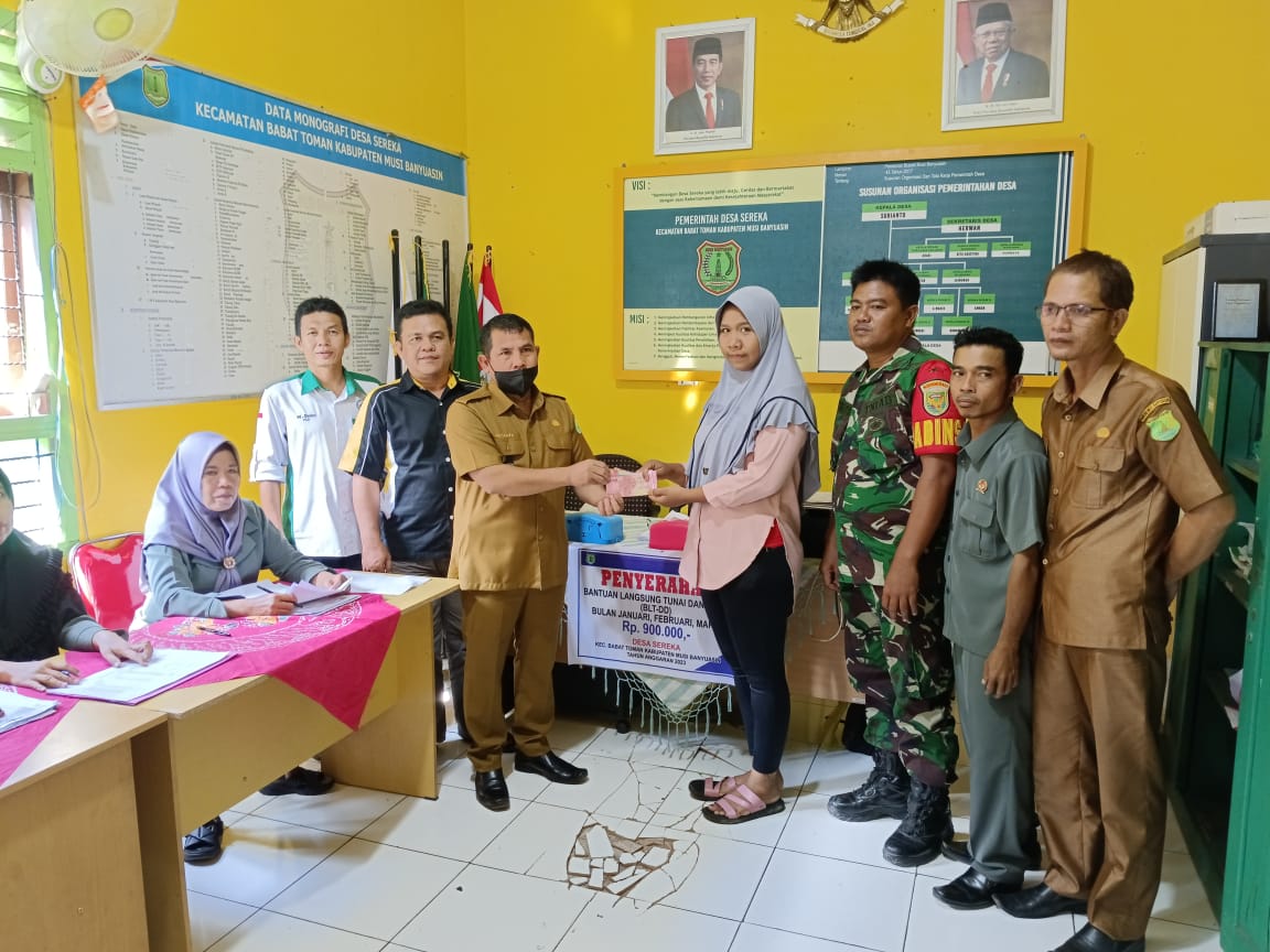 Kepala Desa Sereka Sirianto mengatakan, “penyerahan BLT-DD tahap ke I ini untuk Januari, Febuari dan Maret 2023, sebesar Rp 900.000 untuk tiga bukan penyerahan BLT ini sesuai dengan intruksi Pemerintah pusat dan dinas PMD dengan tujuan adalah untuk meringankan beban ekonomi warga yang kurang mampu, dan diberikan secara bertahap dengan nominal sebesar Rp 300 ribu/bulannya diserahkan selama tiga bulan.”