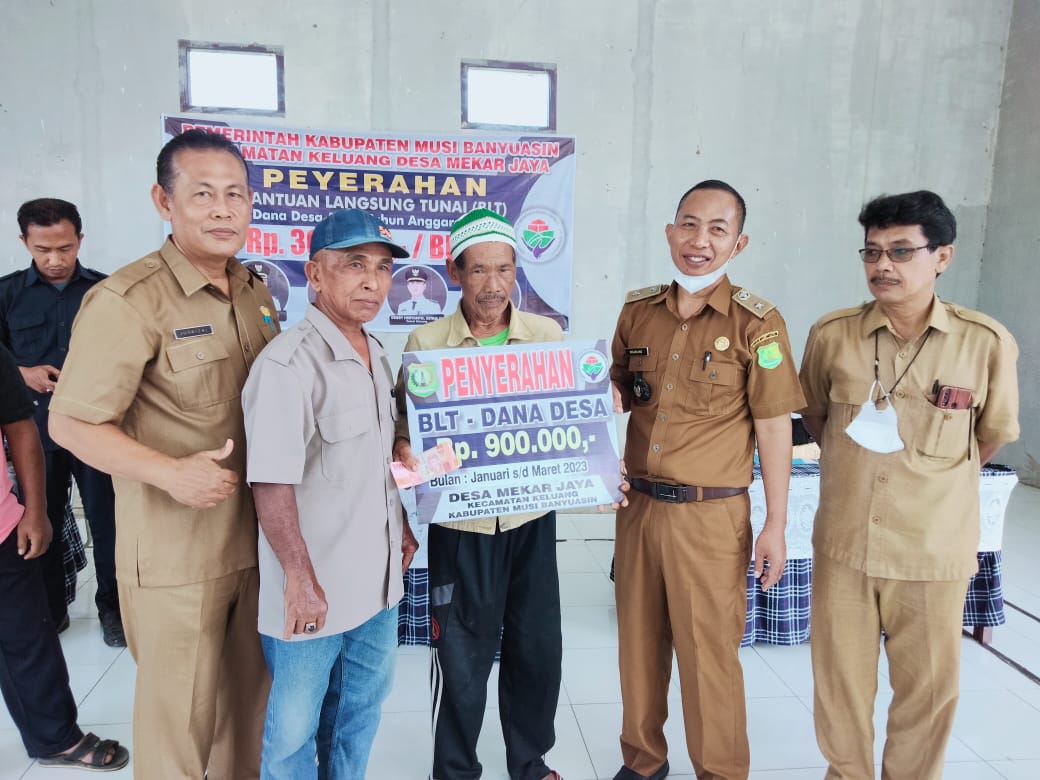 bidikcamera.com, Muba – Pemdes Mekar Jaya Kecamatan Keluang Kabupaten Musi Banyuasin salurkan BLT-DD tahap I untuk bulan Januari – Maret 2023 sebanyak 49 KPM pada keluarga kurang mampu (17/04/23).