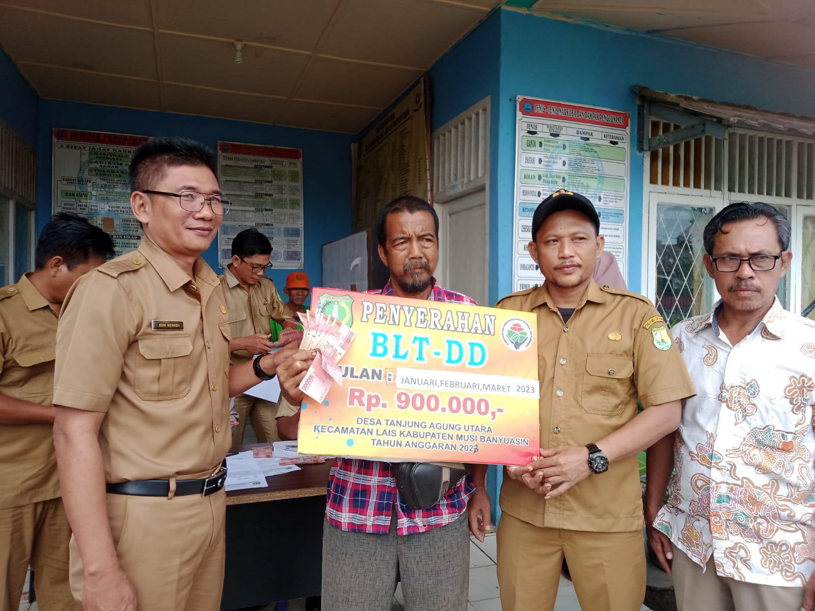 Kepala Desa Tanjung Agung Utara Manap mengatakan, “penyerahan BLT-DD tahap ke I ini untuk Januari, Febuari dan Maret 2023, sebesar Rp 900.000 untuk tiga bukan penyerahan BLT ini sesuai dengan intruksi Pemerintah pusat dan dinas PMD dengan tujuan adalah untuk meringankan beban ekonomi warga yang kurang mampu, dan diberikan secara bertahap dengan nominal sebesar Rp 300 ribu/bulannya diserahkan selama tiga bulan.