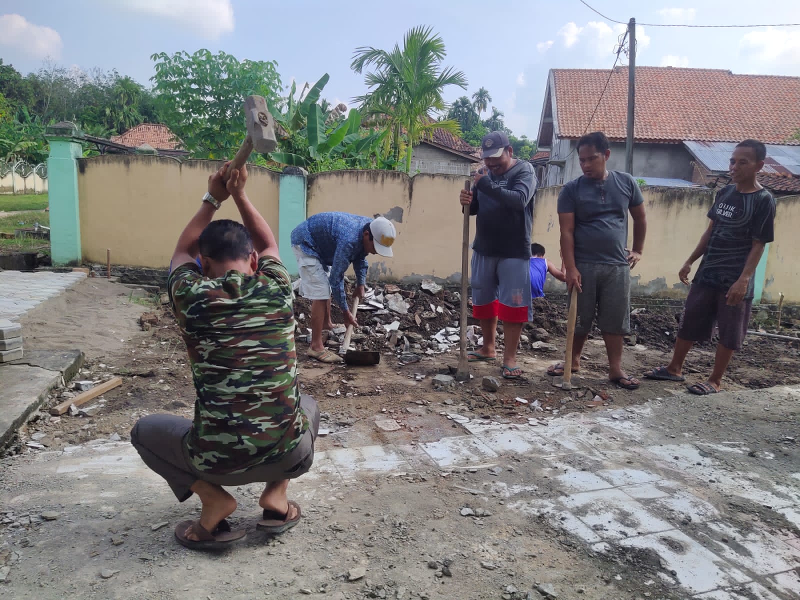 bidikcamera.com, MUBA – Pemerintah Desa Tenggaro Kecamatan Keluang Kabupaten Musi Banyuasin ajak warga desa gotong royong pemasangan batu konblok di halaman Masjid Bidayatul Muttaqin (05/05/23).