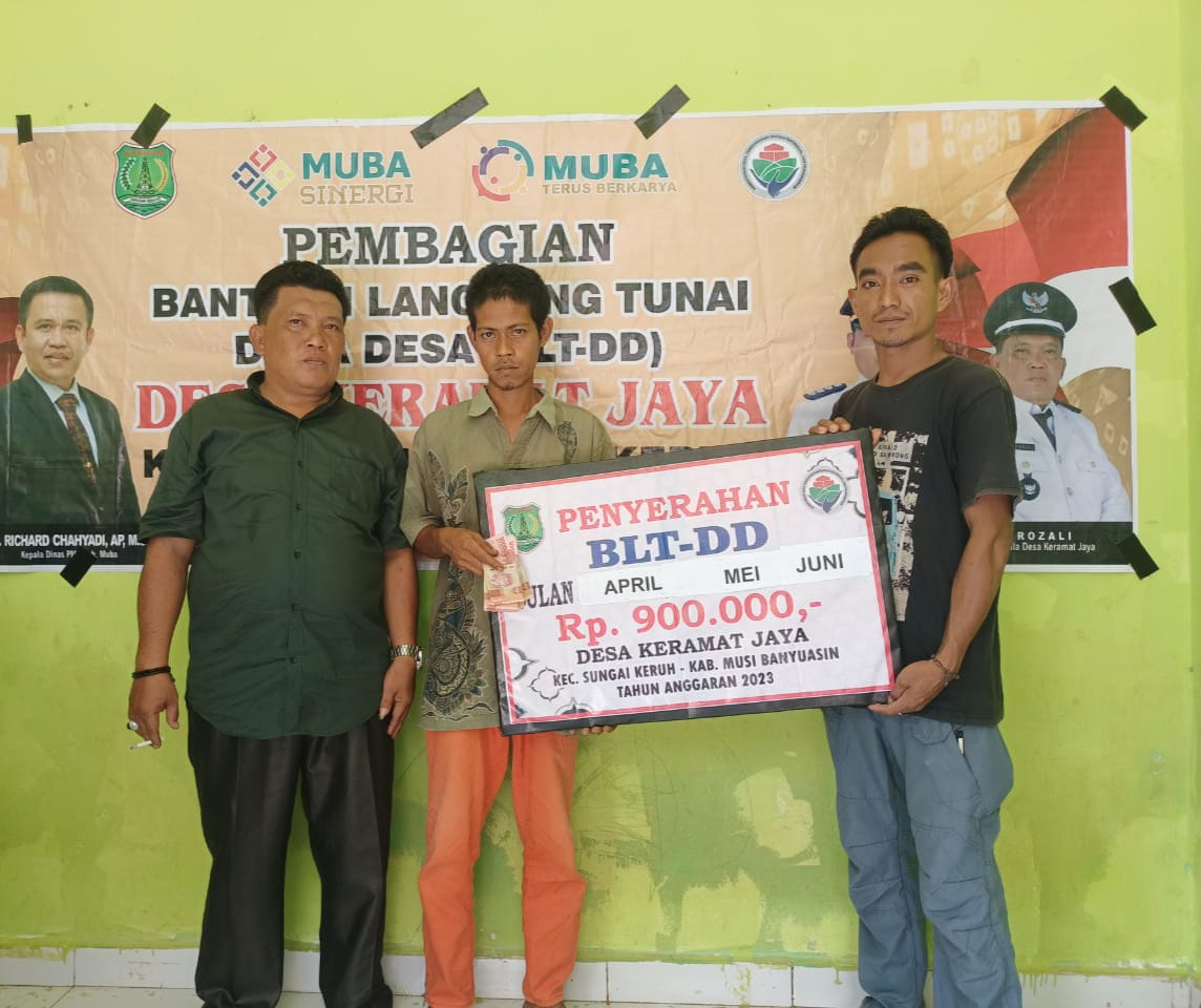 bidikcamera.com, MUBA – Kades Keramat Jaya Kecamatan Sungai Keruh Kabupaten Musi Banyuasin salurkan BLT-DD tahap 2 untuk bulan April – Juni 2023 sebanyak 42 KPM pada keluarga kurang mampu (24/06/23).