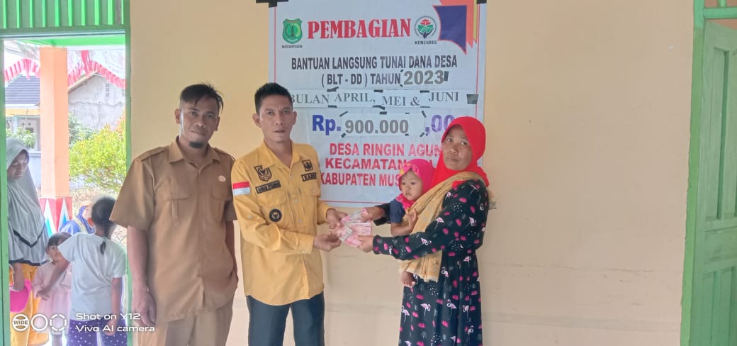 bidikcamera.com, MUBA – Kades Ringin Agung Kecamatan Lalan Kabupaten Musi Banyuasin salurkan BLT-DD tahap 2 untuk bulan April – Juni 2023 sebanyak 33 KPM pada keluarga kurang mampu (27/06/23).