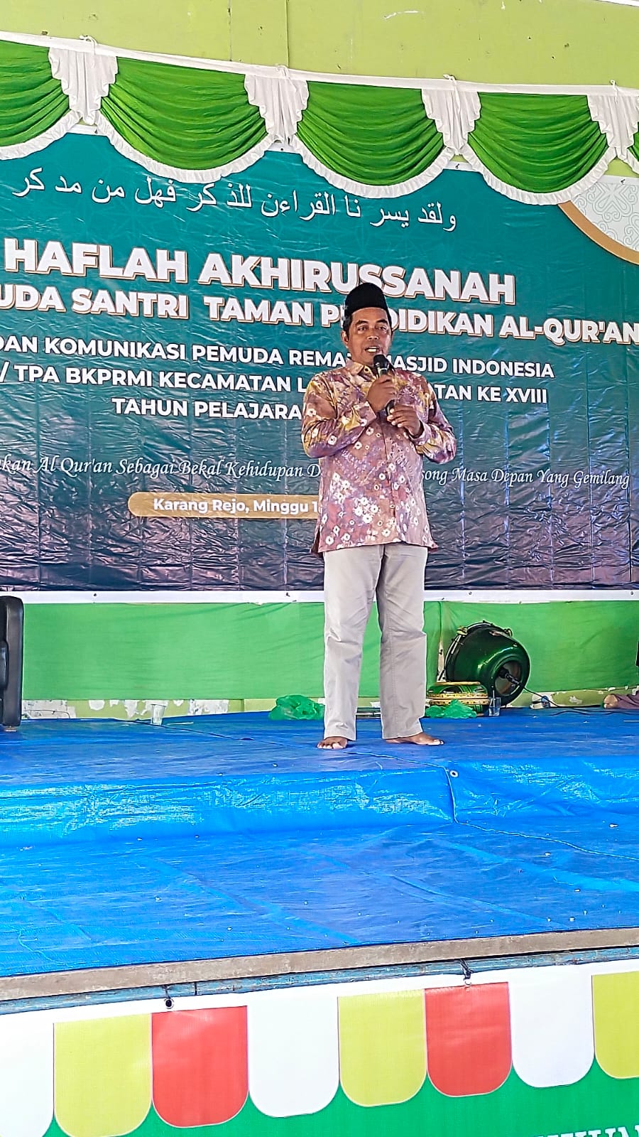 Wisuda santri serentak ini dilaksanakan oleh Pemerintah Desa bekerjasama dengan Santri TPA 3 Desa Karang Makmur.
