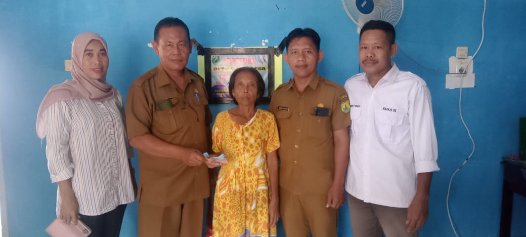 Bantuan BLT-DD diserahkan oleh Kepala Desa yang didampingi Perangkat Desa, Ketua BPD dan anggota, LPM, KPM, KPMD, Pendamping desa, perwakilan kecamatan Sekcam yang disaksikan Babinsa dan Babinkamtibmas bertempat di balai desa.