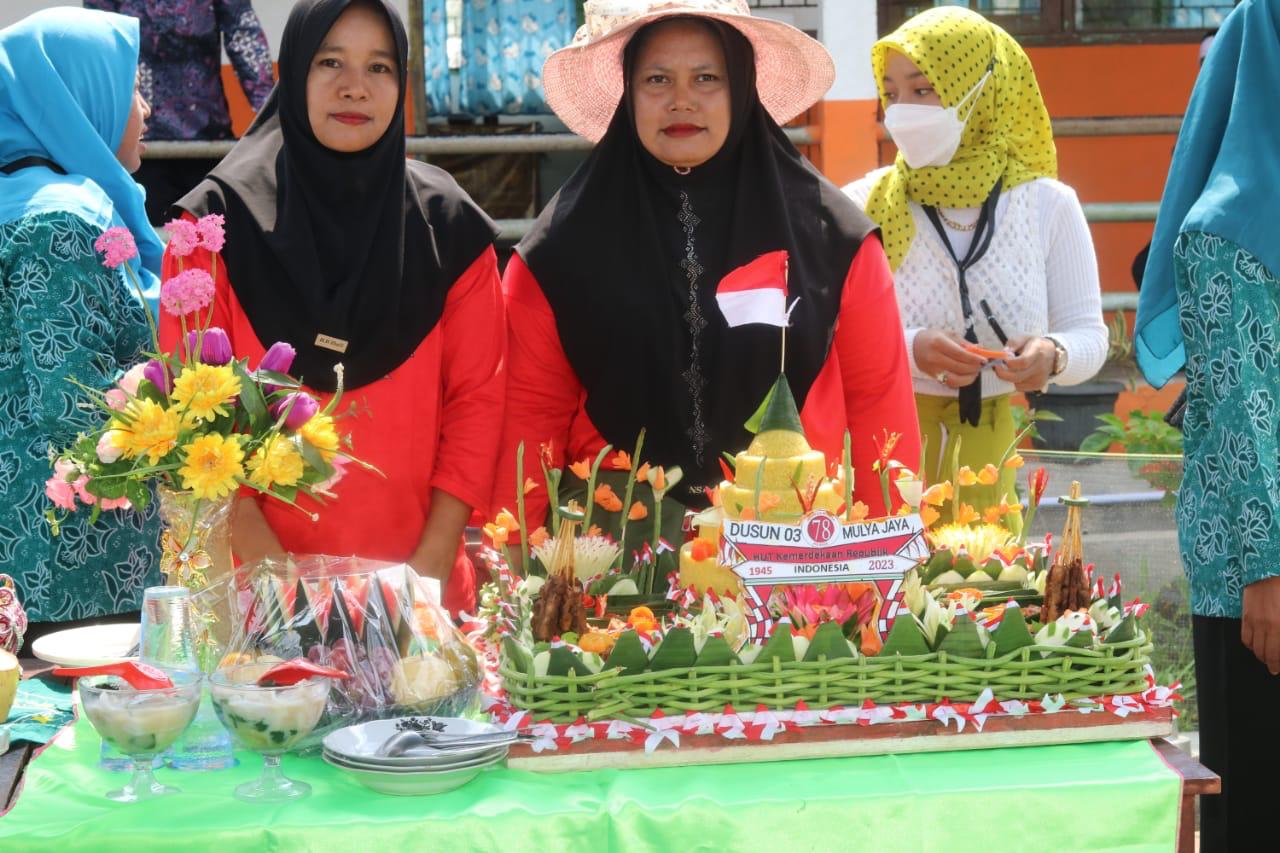 Hari kemerdekaan Republik Indonesia yang ke 78 dirayakan seluruh Rakyat Indonesia berlangsung dengan meriah dengan meliputi berbagai perlombaan- perlombaan tradisional seperti, perlombaan pembuatan nasi tumpeng antar dusun di Desa Mulya Jaya, terlihat para ibu-ibu PKK dengan sibuk dan antusias dari persiapan sampai mengelola menjadi nasi tumpeng.