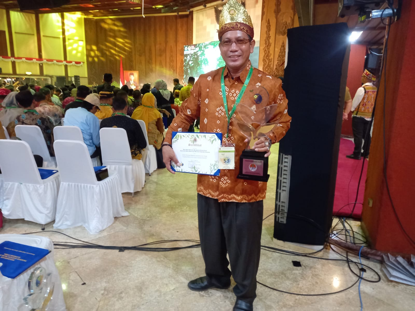 bidikcamera.com, MUBA – Kades Bumi Kencana Kecamatan Sungai Lilin Kabupaten Musi Banyuasin terima secara langsung sertifikat dari Menteri Lingkungan Hidup dan Kehutanan Republik Indonesia satu-satunya dari Musi Banyuasin yang menerima penghargaan, Selasa (24/10/23).