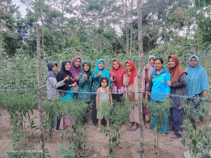 bidikcamera.com, MUBA – Kelompok Wanita Tani (KWT) Mentari Pagi Desa Senawar Jaya Kecamatan Bayung Lencir Kabupaten Musi Banyuasin panen buah cabai dan sayuran-sayuran (09/10/23).