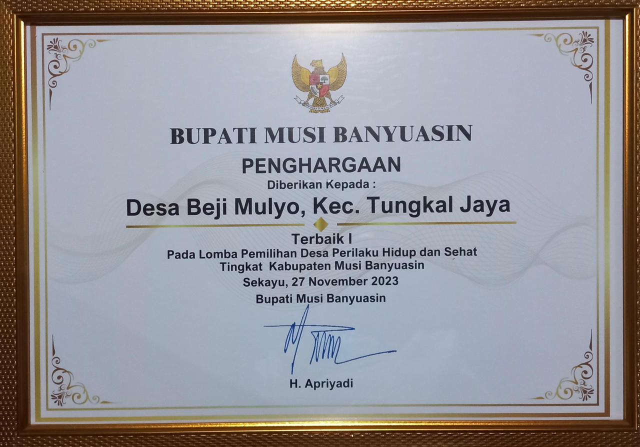 2 (Dua) sekaligus penghargaan yang diraih oleh Desa Beji Mulyo dalam rangka kategori Perlombaan PHBS dan Posyandu terbaik tingkat Kabupaten Musi Banyuasin.
