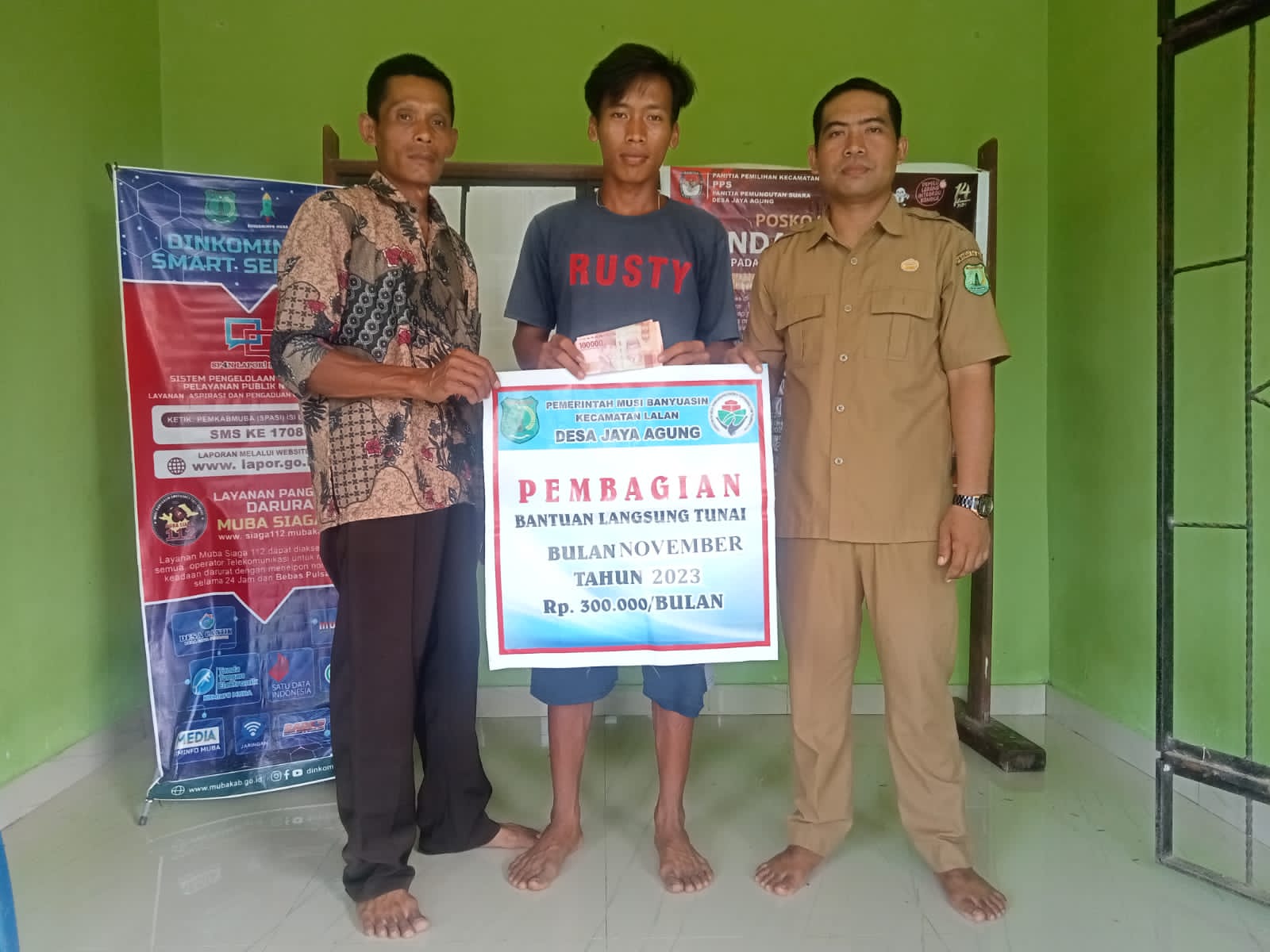 Kepala Desa Jaya Agung Kasiripin mengatakan, “sekarang kita sudah membagikan BLT pada tahap IV atau tahapan akhir di tahun anggaran desa 2023 untuk BLT, penyerahan BLT-DD tahap ke IV untuk bulan Oktober, November dan Desember 2023 untuk tiga bulan sebesar Rp 900.000 untuk penyerahan BLT ini sesuai dengan intruksi Pemerintah pusat dan dinas PMD dengan tujuan untuk meringankan beban ekonomi warga yang kurang mampu, dan diberikan secara bertahap dengan nominal sebesar Rp 300 ribu/ bulannya diserahkan selama tiga bulan, dan pemerintah desa juga selain menyalurkan BLT pada masyarakat yang kurang mampu ini bentuk keperdulian kita untuk meringankan beban semoga saja dapat bermanfaat”.