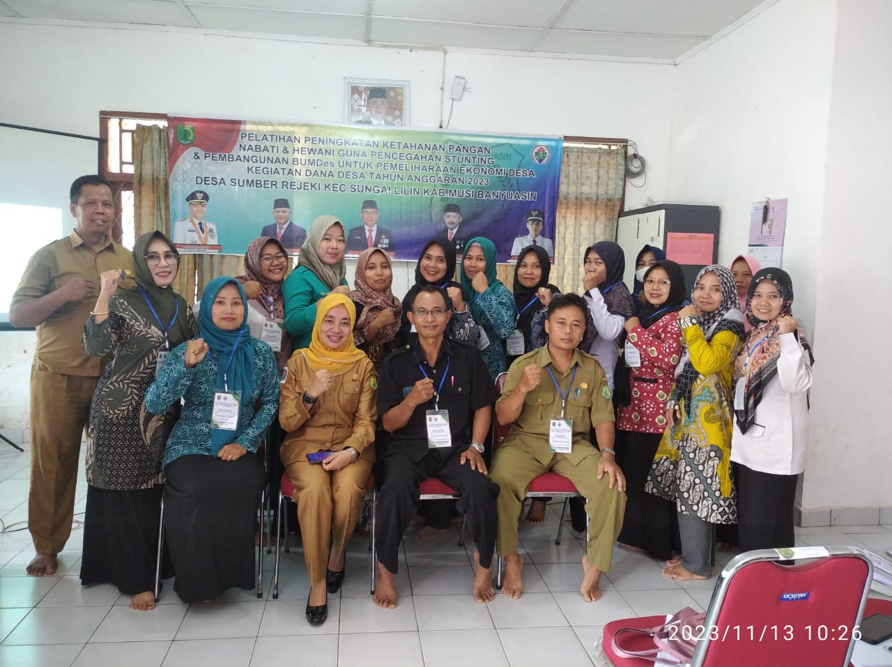 bidikcamera.com, MUBA – Pemdes Sumber Rezeki Kecamatan Sungai Lilin Kabupaten Musi Banyuasin adakan kegiatan pelatihan ketahanan pangan dalam rangka pencegahan stunting dan pengembangan bumdes untuk pemulihan ekonomi desa (13/11/23).