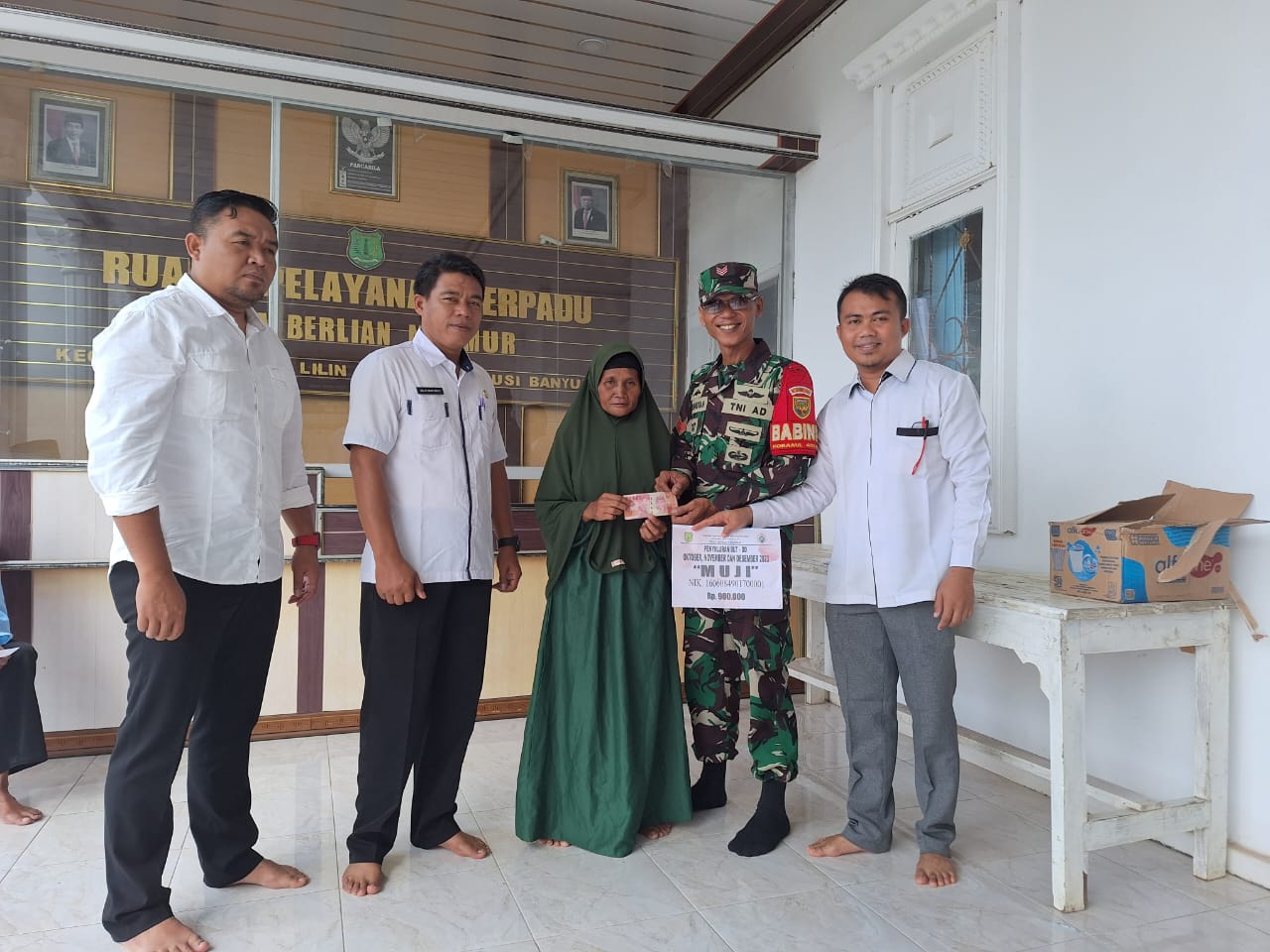 Penyerahan bantuan BLT-DD oleh Kepala Desa dan Sekdes didampingi Perangkat Desa, Ketua BPD dan anggota, LPM, KPMD, Pendamping desa serta perwakilan Kecamatan Kalis Muryanto dan disaksikan Babinsa Apriansyah bertempat di kantor desa.