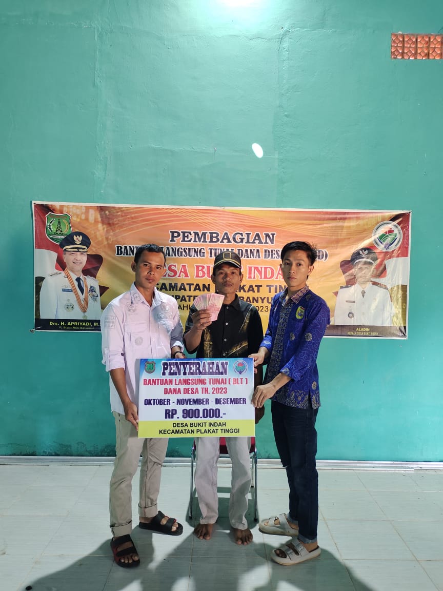 Kepala Desa Bukit Indah Aladin mengatakan, “sekarang kita sudah membagikan BLT pada tahap IV atau tahapan akhir di tahun anggaran desa 2023 untuk BLT, penyerahan BLT-DD tahap ke IV untuk bulan Oktober- November dan Desember 2023 untuk tiga bulan sebesar Rp 900.000 untuk penyerahan BLT ini sesuai dengan intruksi Pemerintah pusat dan dinas PMD dengan tujuan untuk meringankan beban ekonomi warga yang kurang mampu, dan diberikan secara bertahap dengan nominal sebesar Rp 300 ribu/ bulannya diserahkan selama tiga bulan, dan pemerintah desa juga selain menyalurkan BLT pada masyarakat yang kurang mampu ini bentuk keperdulian kita untuk meringankan beban semoga saja dapat bermanfaat”.