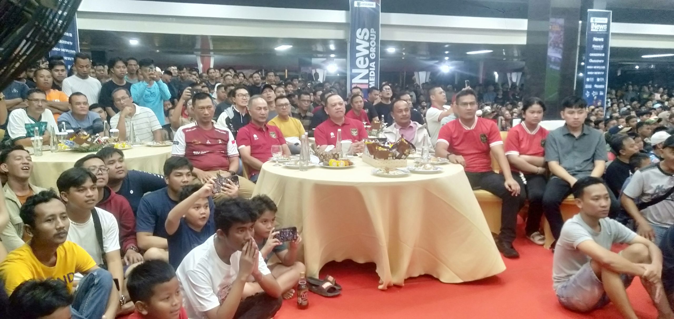 Nonton bareng piala AFC Indonesia U – 23 VS Uzbekistan disusun sedemikian rupa,ada beberapa layar disiapkan untuk menyaksikan langsung pertandingan sepak bola dimaksud.