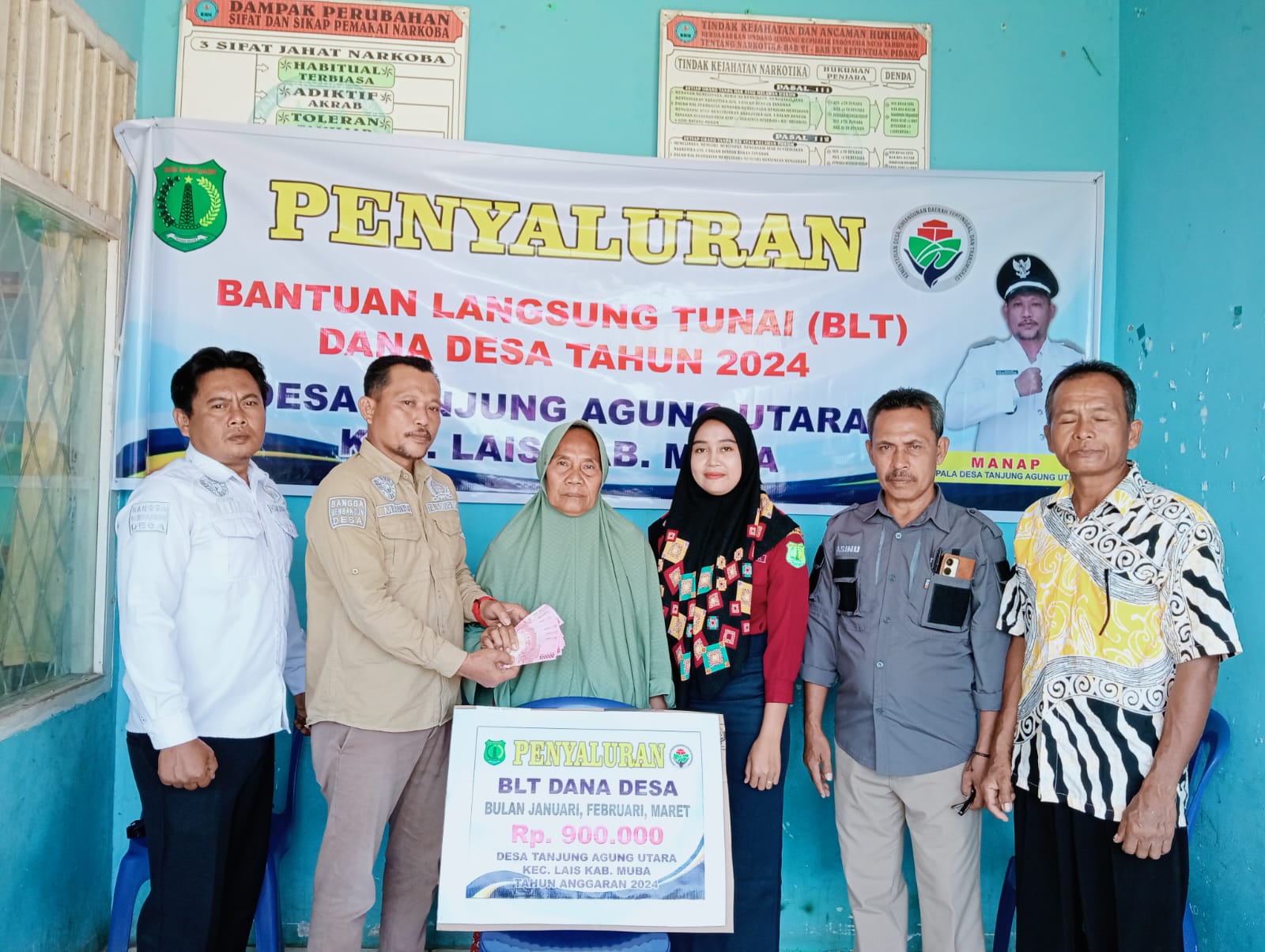 Kepala Desa Tanjung Agung Utara Manap mengatakan, “penyerahan BLT-DD tahap pertama ini untuk bulan Januari, Febuari dan Maret 2024 sebesar Rp 900.000 untuk tiga bulan penyerahan BLT ini sesuai dengan intruksi Pemerintah pusat dan dinas PMD dengan tujuan untuk meringankan beban ekonomi warga yang kurang mampu, dan diberikan secara bertahap dengan nominal sebesar Rp 300 ribu/bulannya diserahkan selama tiga bulan, dan pemerintah desa juga selain menyalurkan BLT pada masyarakat yang kurang mampu ini bentuk keperdulian kita untuk meringankan beban semoga saja dapat bermanfaat”.