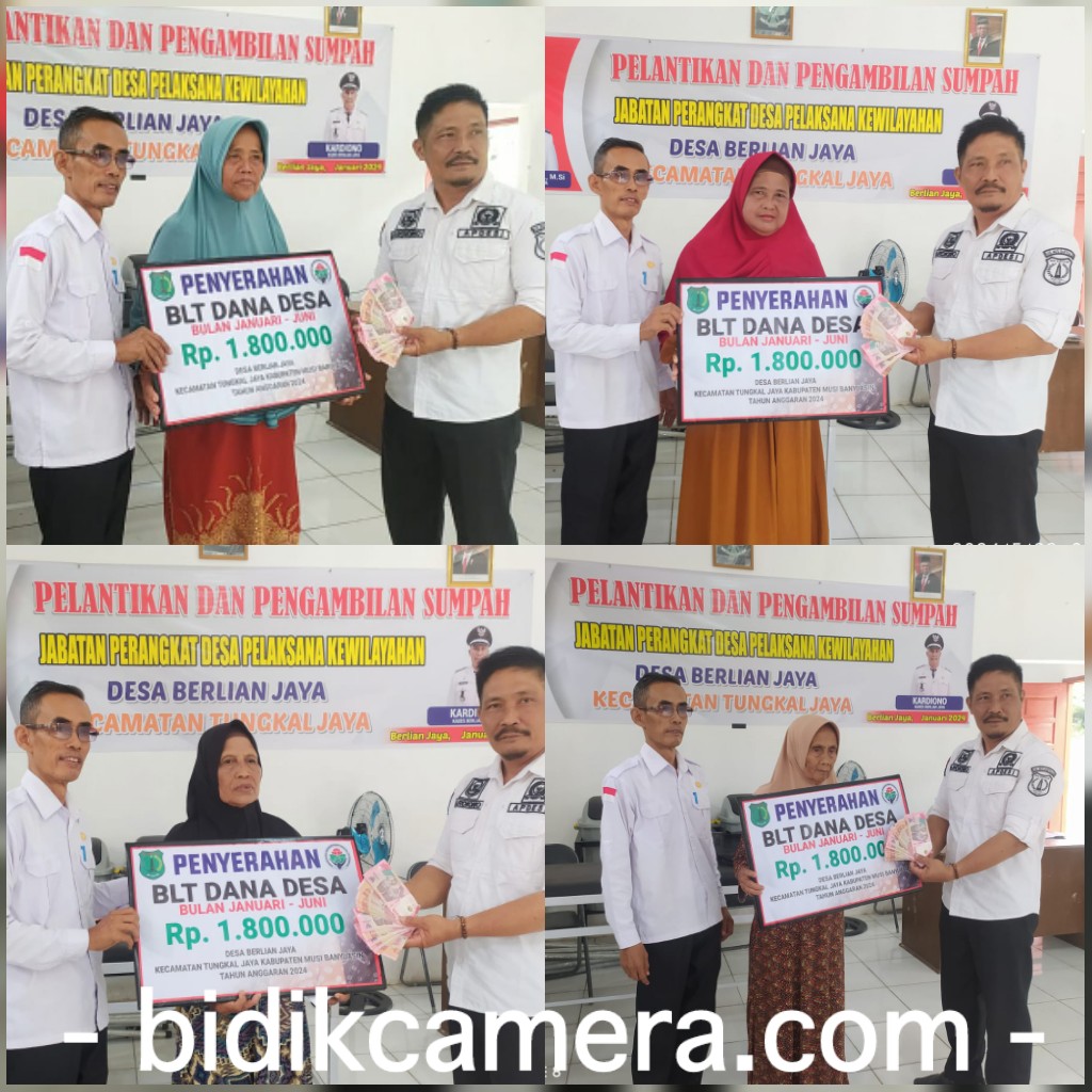 bidikcamera.com, MUBA – Untuk meringankan beban masyarakat kurang mampu/miskin Pemerintah Desa (Pemdes) Berlian Jaya Kecamatan Tungkal Jaya Kabupaten Musi Banyuasin menyalurkan BLT-DD tahap I untuk bulan Januari – Juni 2024 sebanyak 49 KPM pada Rabu (22/05/24).