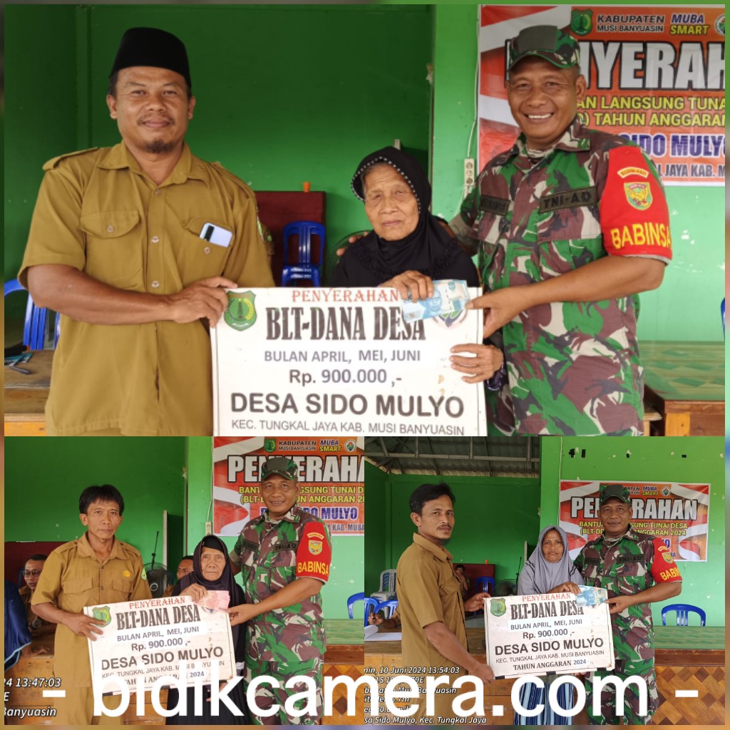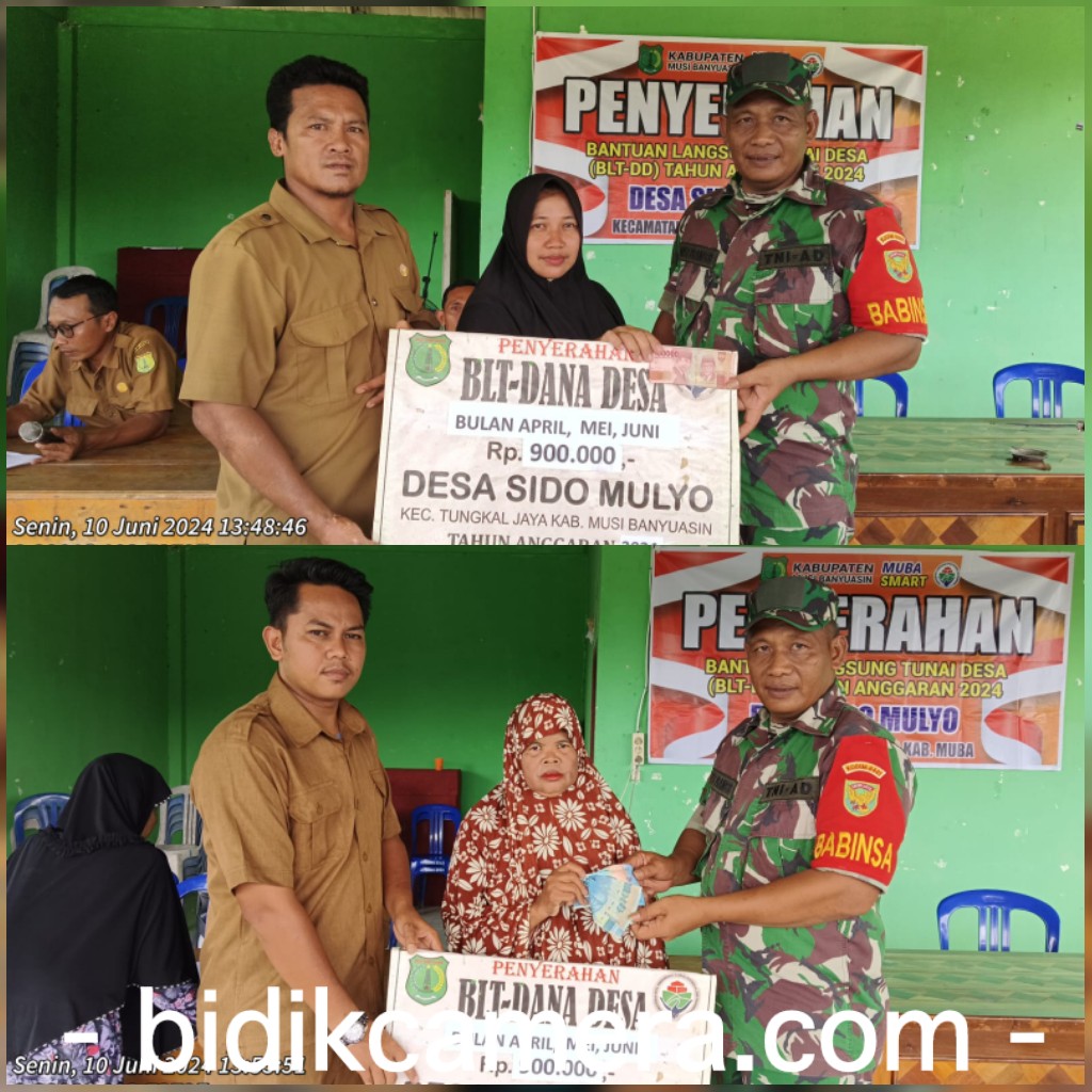 Kepala Desa Sido Mulyo Suwito mengatakan “penyerahan BLT ini untuk bulan April-Juni 2024 sebesar Rp 900.000 untuk tiga bulan, penyerahan BLT ini sesuai dengan intruksi Pemerintah pusat dan dinas PMD dengan tujuan untuk meringankan beban ekonomi warga yang kurang mampu, dan diberikan secara bertahap dengan nominal sebesar Rp 300 ribu/ bulannya diserahkan selama enam bulan, dan pemerintah desa juga selain menyalurkan BLT pada masyarakat yang kurang mampu ini bentuk keperdulian kita untuk meringankan beban semoga saja dapat bermanfaat”.