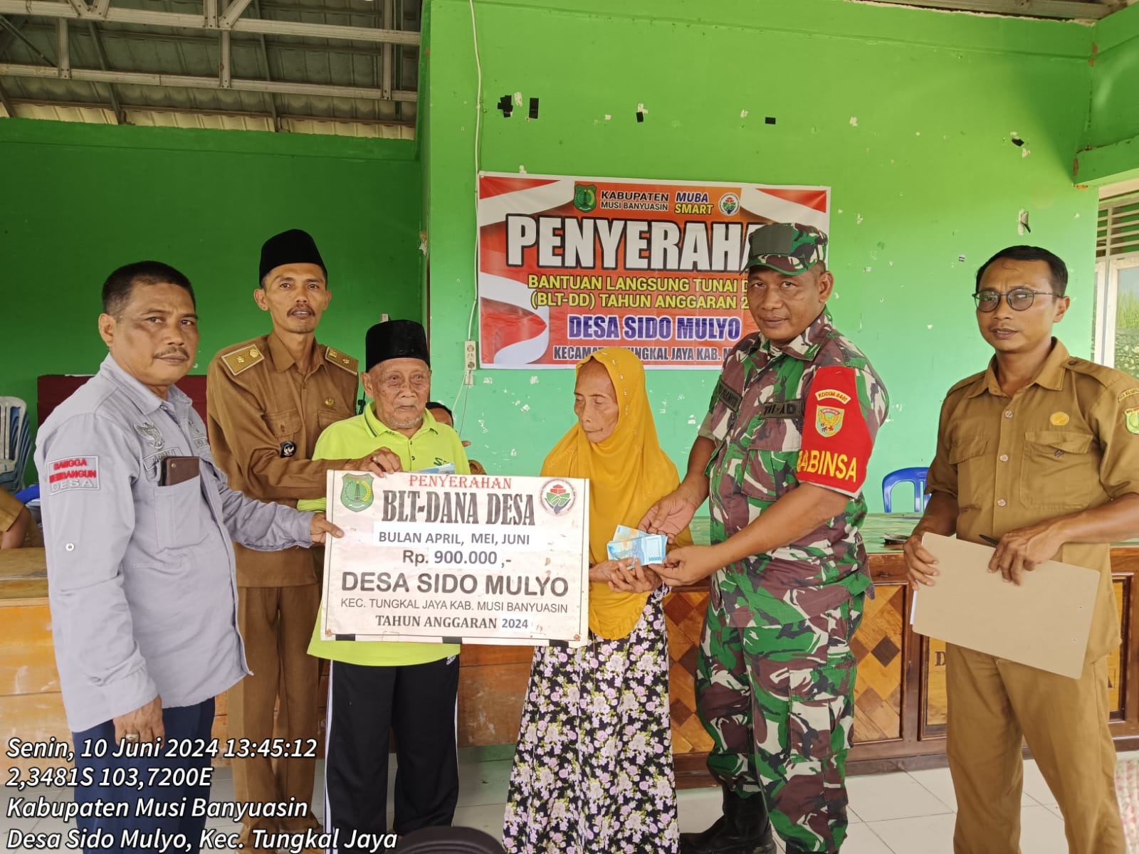 bidikcamera.com, MUBA – Untuk meringankan beban masyarakat kurang mampu/miskin Pemerintah Desa Sido Mulyo Kecamatan Tungkal Jaya Kabupaten Musi Banyuasin menyalurkan BLT-DD untuk bulan April, Mei dan Juni 2024 Sebanyak 20 KPM pada Rabu (10/06/24).