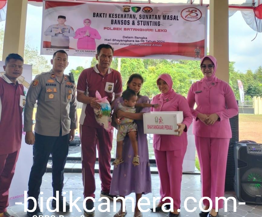 “Pada rangkaian HUT Bhayangkara ke-78 tahun 2024 ini kegiatan sunatan massal diikuti 30 anak serta bakti kesehatan lansia 30 orang, Bansos sebanyak 35 paket, dan stunting bagi 3 anak”