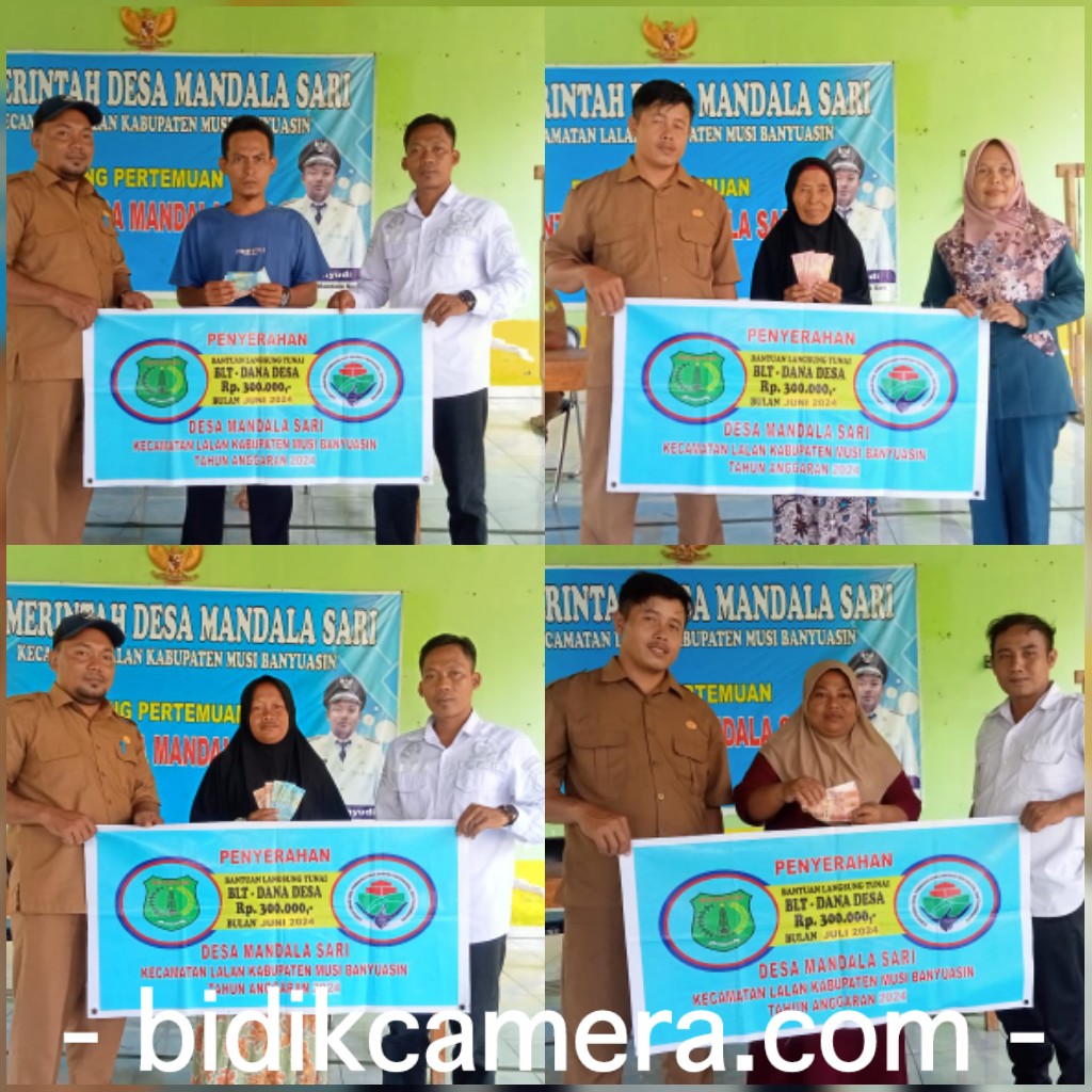bidikcamera.com, MUBA – Kades dan perangkat Desa Mandala Sari Kecamatan Lalan Kabupaten Musi Banyuasin kembali menyalurkan Bantuan BLT-DD untuk periode bulan Juni dan Juli tahun 2024 sebanyak 16 KPM dengan tujuan meringankan beban masyarakat kurang mampu/miskin pada Senin (15/07/24).