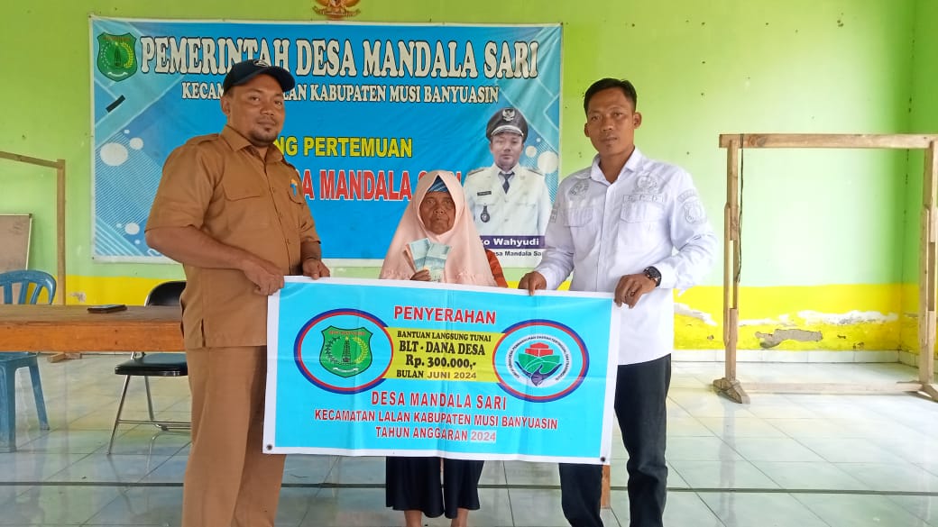bidikcamera.com, MUBA – Kades dan perangkat Desa Mandala Sari Kecamatan Lalan Kabupaten Musi Banyuasin kembali menyalurkan Bantuan BLT-DD untuk periode bulan Juni dan Juli tahun 2024 sebanyak 16 KPM dengan tujuan meringankan beban masyarakat kurang mampu/miskin pada Senin (15/07/24).