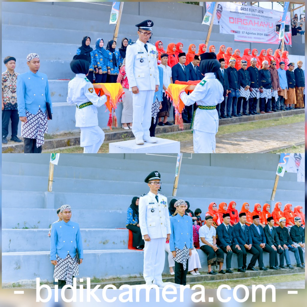 bidikcamera.com, MUBA – Pengibaran bendera Merah Putih di Desa Bukit Jaya Kecamatan Sungai Lilin Kabupaten Musi Banyuasin dalam rangka Upacara Bendera memperingati HUT RI ke 79 Tahun (17/08/24).
