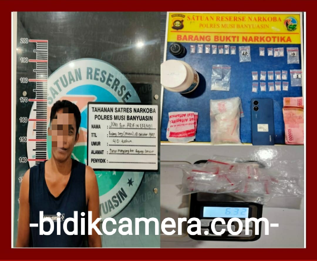 bidikcamera.com,,,,MUSIBANYUASIN – Tindak pidana Narkotika, kembali berhasil diungkap Satuan Reserse Narkoba Polres Musi Banyuasin.Alih-alih mau untung besar Bapak Paruh baya asal desa mangsang kini akan mendekam meninggalkan anggota keluarga yang tersayang,untuk menebus dosanya kepada Negara akibat berjualan Narkoba.20 Agustus 2024