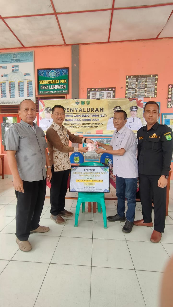 bidikcamera.com, MUBA – Dalam rangka meringankan beban masyarakat tidak mampu, Pemerintah Desa (Pemdes) Lumpatan Kecamatan Sekayu Kabupaten Musi Banyuasin menyalurkan BLT-DD sebanyak 83 KPM untuk Periode Juli-September pada tanggal (26/09/24).