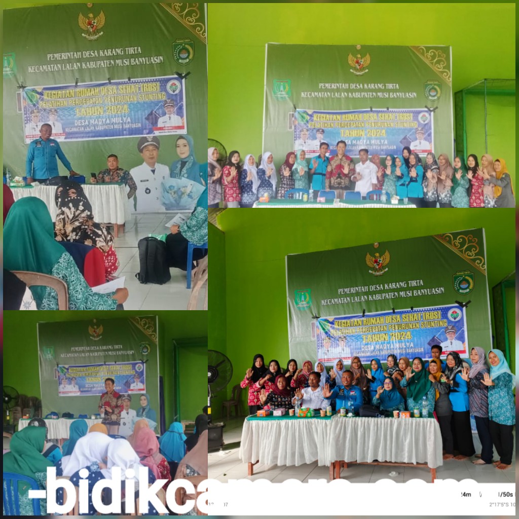 bidikcamera.com, MUBA – Pemerintahan Desa (Pemdes) Madya Mulya Kecamatan Lalan Kabupaten Musi Banyuasin mengadakan pelatihan Rumah Desa Sehat (RDS) dalam rangka percepatan penurunan stunting (12/09/24).