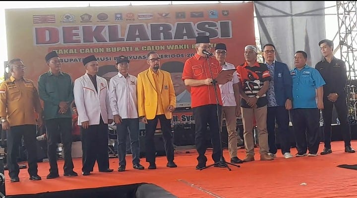 Dalam pembacaan deklarasi yang dibacakan oleh Beni Hernedi S.Ip ketua Partai PDI Perjuangan dan diikuti Ketua – Ketua Partai koalisi dengan komitmen deklarasi yaitu bahwa siap memenangkan Pasangan lusafar, dengan meraih kemenangan, memaksimalkan seluruh potensi dan sumber daya yang dimiliki, baik ditingkat Kabupaten, Kecamatan, Desa, hingga ke seluruh lapisan masyarakat.