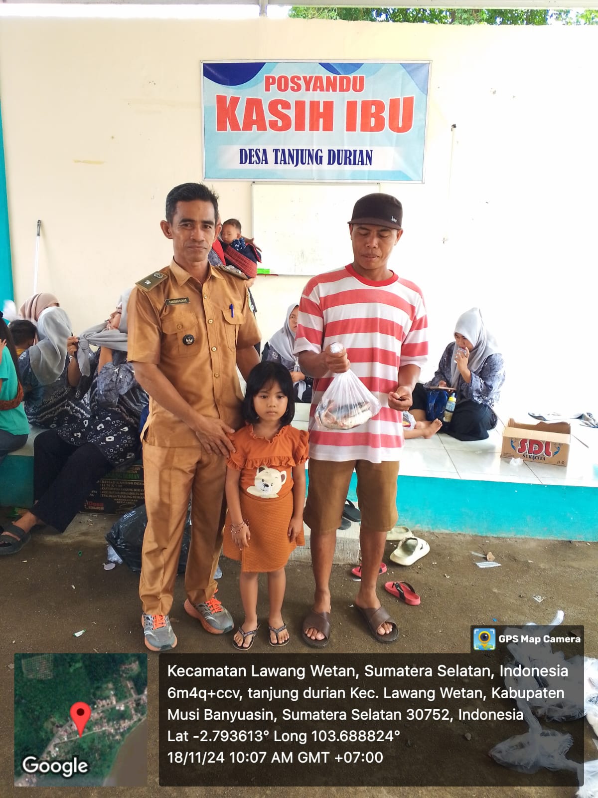 bidikcamera.com, MUBA – Pemerintahan Desa (Pemdes) Tanjung Durian Kecamatan Lawang Wetan Kabupaten Musi Banyuasin membagikan ikan kepada anak-anak Posyandu dan ibu hamil (Bumil) (18/11/24).