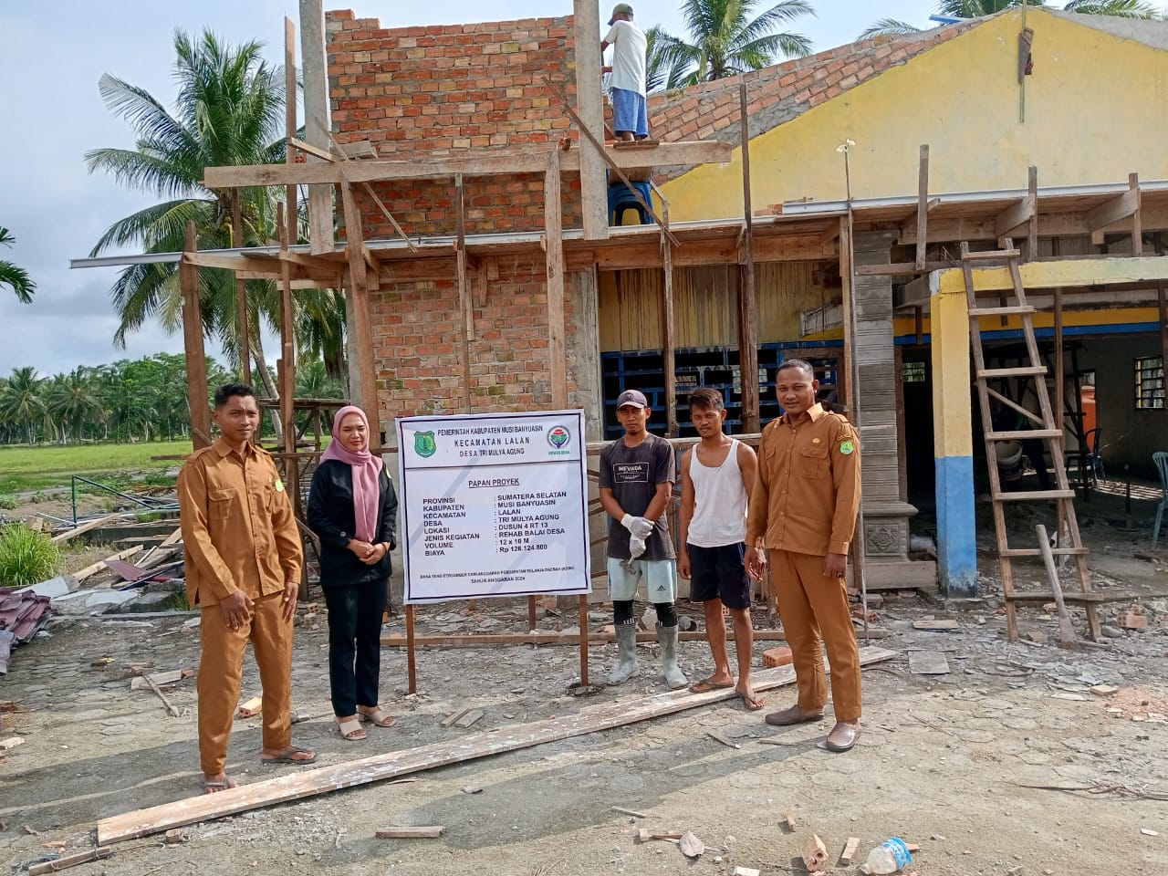 bidikcamera.com, MUBA – Pemdes Tri Mulya Agung Kecamatan Lalan Kabupaten Musi Banyuasin mengadakan kegiatan rehab gedung balai desa yang berasal dari Dana Desa APBN Tahun 2024.
