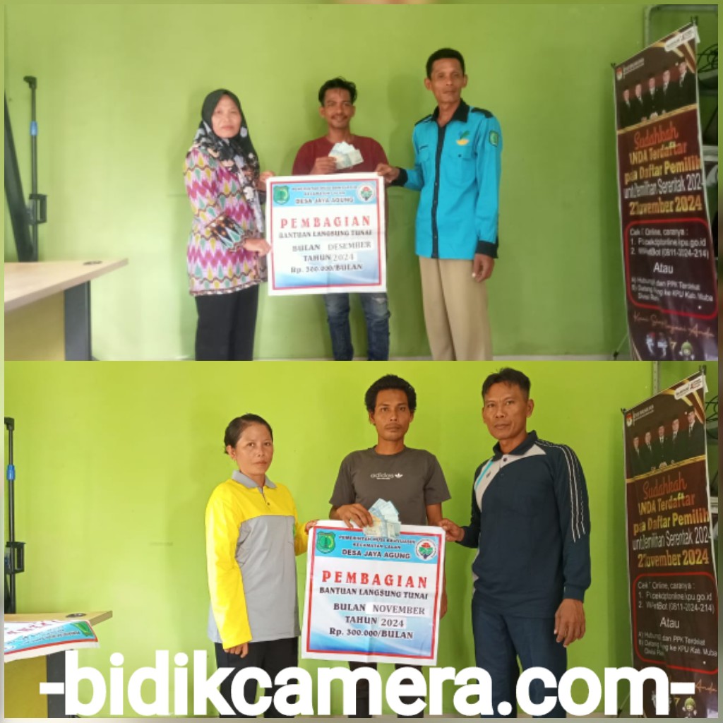 bidikcamera.com, MUBA – KPM Desa Jaya Agung Kecamatan Lalan Kabupaten Musi Banyuasin menerima Bantuan Langsung Tunai Dana Desa (BLT-DD) untuk periode terakhir tahun 2024 berjumlah sebanyak 13 KPM (21/11/24).