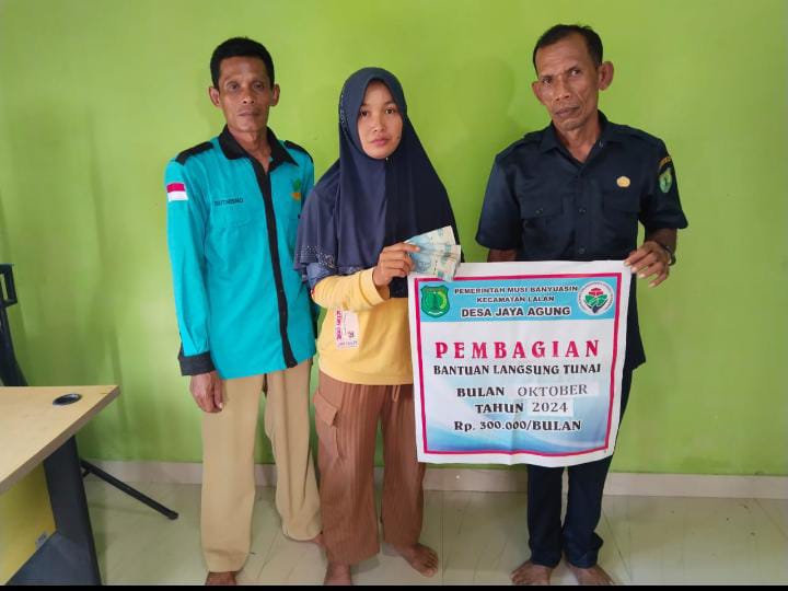 bidikcamera.com, MUBA – KPM Desa Jaya Agung Kecamatan Lalan Kabupaten Musi Banyuasin menerima Bantuan Langsung Tunai Dana Desa (BLT-DD) untuk periode terakhir tahun 2024 berjumlah sebanyak 13 KPM (21/11/24).